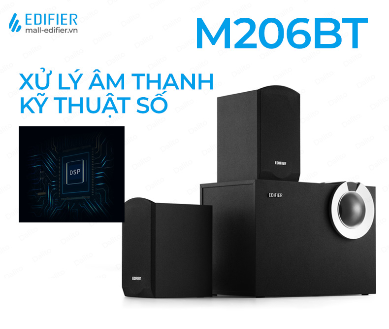 DSP trong loa Edifier M206BT được sử dụng để điều chỉnh âm lượng, điều chỉnh EQ và xử lý tín hiệu âm thanh để đảm bảo âm thanh tốt nhất có thể. DSP có khả năng giảm nhiễu, giảm tiếng ồn và giảm độ méo, đồng thời tăng cường độ tương phản và chi tiết âm thanh.