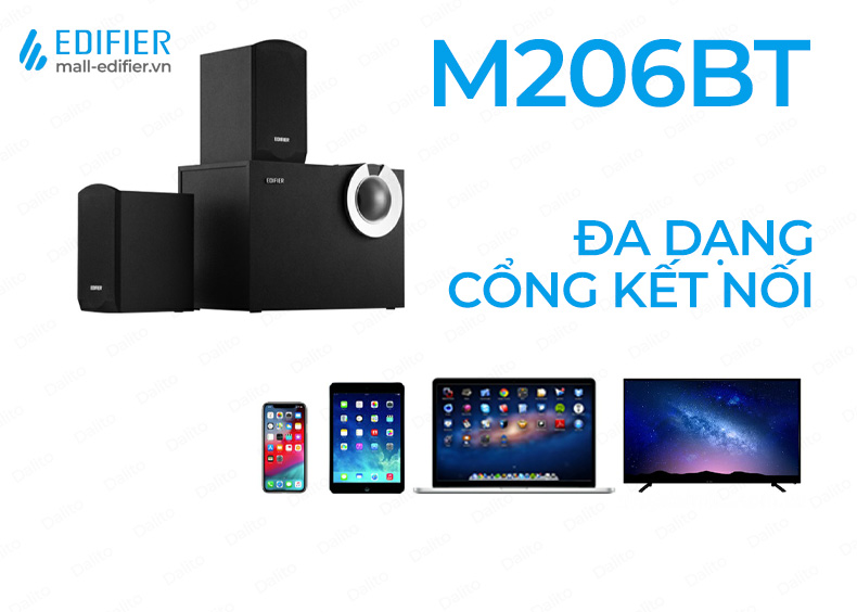 Kết nối Bluetooth: Loa Edifier M206BT được tích hợp công nghệ Bluetooth 5.0 cho phép kết nối không dây với các thiết bị phát nhạc như điện thoại di động, máy tính bảng, laptop, máy tính để bàn hoặc các thiết bị khác có tính năng Bluetooth.