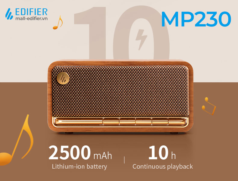 Thời lượng pin lên đến 10 giờ liên tục là một trong những ưu điểm nổi bật của loa Edifier MP230. Điều này có nghĩa là bạn có thể sử dụng loa suốt cả ngày mà không cần phải sạc lại pin, đồng thời giúp tiết kiệm thời gian và tiền bạc cho việc sạc pin. Pin 2500 mAh Lithium-ion có tác dụng cung cấp nguồn điện cho loa, giúp loa hoạt động liên tục trong khoảng thời gian lâu hơn.