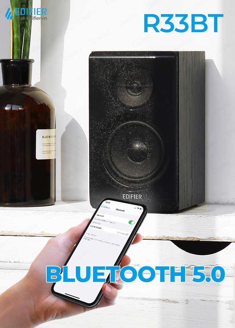Loa Edifier R33BT được trang bị Bluetooth 5.0 cải thiện hiệu suất và độ ổn định. Nó cung cấp tốc độ truyền dữ liệu nhanh hơn, tiêu thụ ít năng lượng và có khả năng hoạt động ổn định ở khoảng cách xa. Bạn có thể dễ dàng kết nối với các thiết bị có khả năng Bluetooth như điện thoại, máy tính bảng, máy tính xách tay và nhiều thiết bị khác một cách nhanh chóng và dễ dàng.Và thể tận hưởng những lợi ích của công nghệ không dây như âm thanh chất lượng cao và không cần kết nối dây.