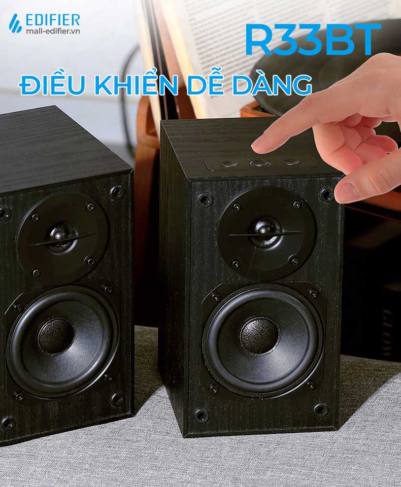 Có, loa Edifier R33BT được trang bị một nút điều khiển phía trên để điều chỉnh âm lượng, bật / tắt nguồn và chuyển đổi nguồn phát âm thanh giữa Bluetooth và AUX.